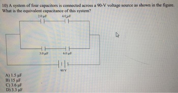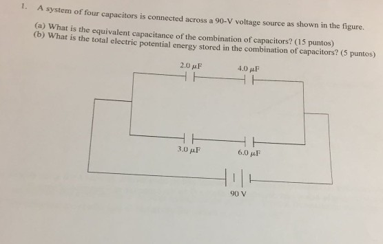 A System Of Four Capacitors Is Connected Across A 90