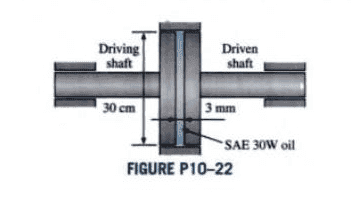 When the driving shaft rotates at a speed of 1200 rpm the driven shaft is observed to rotate at 1125 rpm. The clutch system shown in the figure is used to transmit torque through a 2-mm-thick oil film with u 038 N. The torque capacity of the clutch is the amount of torque that can be transmitted by the clutch when its slipping or when its fully closed.